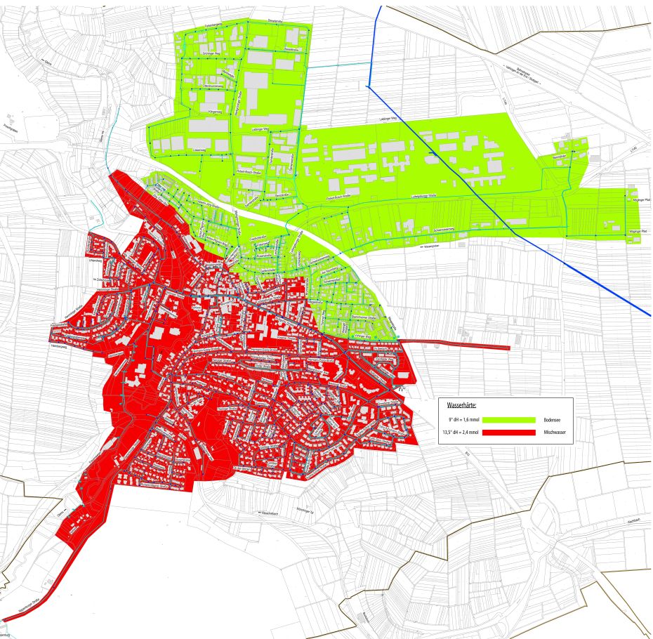 In beiden Gebieten gibt das Wasserwerk Trinkwasser aus dem mittleren Härtebereich an die Bevölkerung ab.
